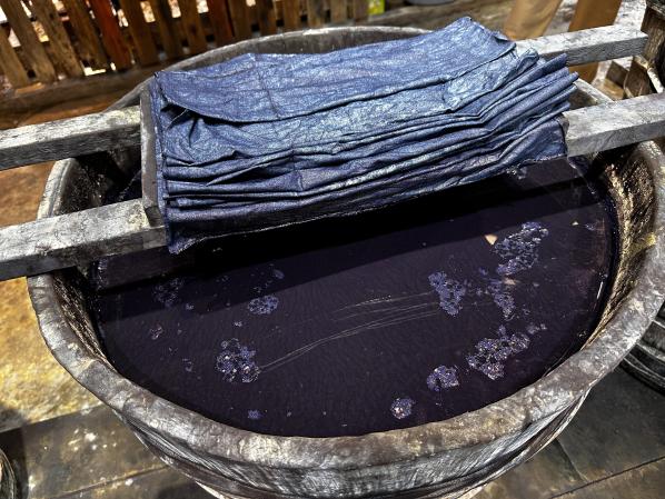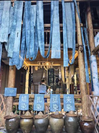 岜沙苗寨作为中国最后一个持枪部落,其祭树仪式与芦笙舞表演展现出强烈的原始信仰与文化韧性,激发了同学们对少数民族视觉符号与现代设计转译可能性的探索。此外在非遗传承人的指引下,师生们关看亮布制作的完整过程,同学们认真观察亮布的色彩肌理、制作工艺,深刻体会传统技艺中“天人合一”的造物哲学。
