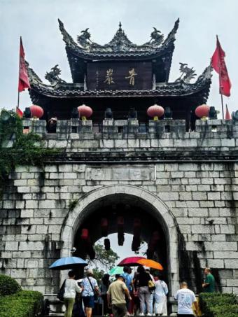 在青岩古镇这一座因军事城防演变的山地兵城,同学们爬上护城长城欣赏古镇风景,在导游讲解下了解古镇建筑群特点,感受这座涵盖军事、交通、宗教、商业等多元类型古镇的风貌,古镇内融合汉族与苗族、布依族文化元素的各类商品更是激发同学们的浓厚兴趣。青岩古镇多民族共居的格局,为同学们提供了山地防御型聚落与民族文化融合的生动案例。花果园嗨乐街区中种类丰富的文创产品,引发大家对地方文化符号如何转化为现代设计元素的深入讨论。同学们纷纷表示,此次考察打破了课堂边界,让抽象的设计理论变得具体可感,为后续的毕业设计、创业项目积累了宝贵的实践素材。