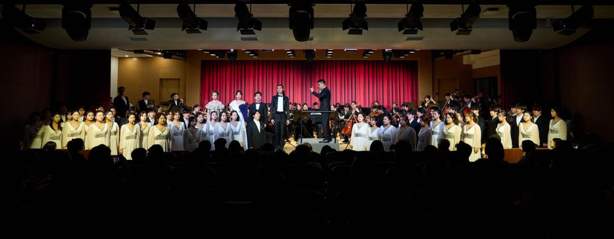 艺术学院学生合唱团首次独立完成贝多芬《第九交响曲》第四乐章《欢乐颂》,突破了以往与专业院团合作的模式,演唱气势磅礴、意境恢弘。声乐专业本科生郑宇迪、刘玥言、张勖勋、姜铭泽担任领唱,他们与合唱团默契配合较好地诠释了这部经典作品。合唱团于2022年起启动学习排演《欢乐颂》的工作,学院多次邀请中央歌剧院艺术家莅临指导并进行同台演出。同学们经过三年多的学习和积累锻炼,最终凭借自身实力独立完成该作品的演绎。这是学院深耕本科实践教学、以演促学成果的生动缩影,彰显了吉大艺术学子潜心钻研的专业素养,为学院艺术人才培养的高质量发展写下有力佐证。