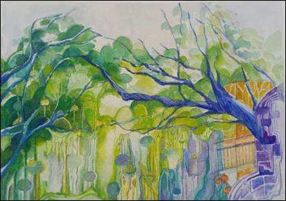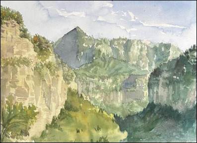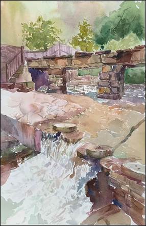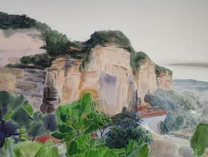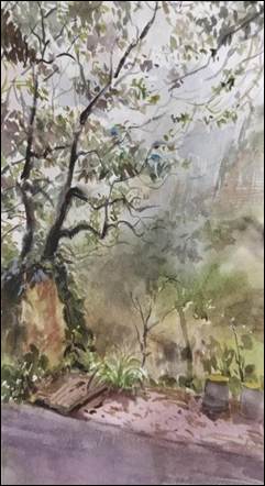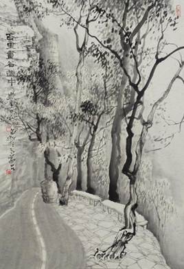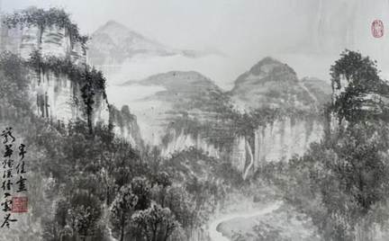 水彩创作以水色淋漓、透明层叠的特点,生动再现了太行山区雨雾朦胧的湿润氛围与溪流石壁的清澈质感,展现了艺术学院在水彩技法教学上的深厚积淀。