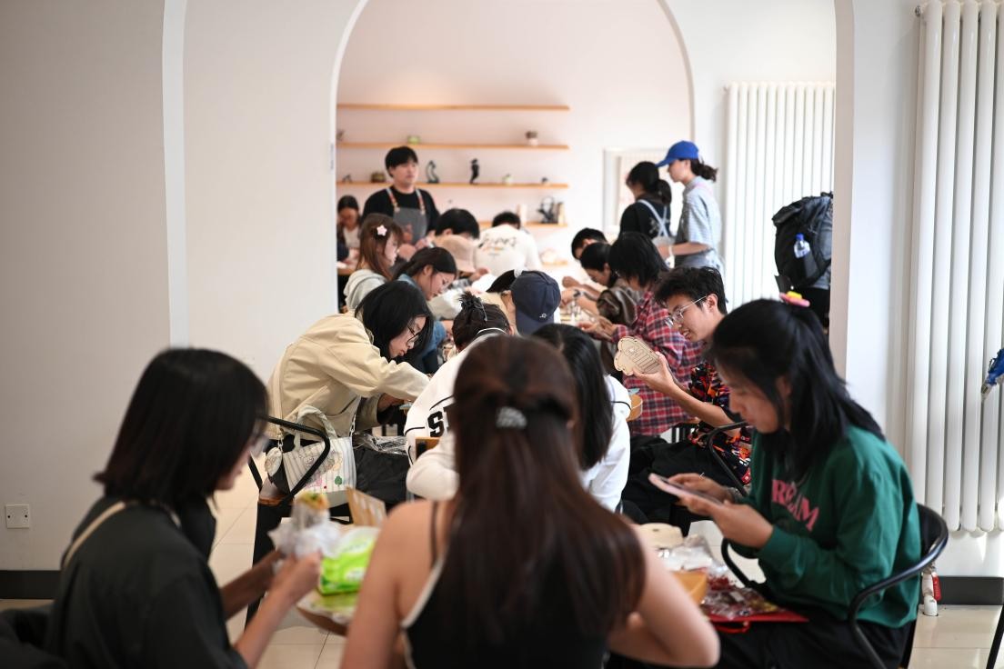 在老师和志愿者的细致引导下,各体验区秩序井然、衔接顺畅。同学们沉浸在动手创作的乐趣中。随着夜幕降临,大家手持自制花灯、扇着专属漆扇,在校园里漫步赏月。传统技艺的底蕴、青春志愿的热忱与师生相聚的温情,在月光下交融成最美的风景,也为这个中秋留下了温暖而深刻的印记。
