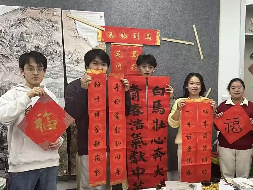 活动面向全校学生开放,吸引了众多书法爱好者踊跃参与。同学们围绕新春祝福、校园风貌、青春理想等主题展纸挥毫,在笔墨流转间交流技艺、品悟传统,既传递出真挚的新年祝愿,也展现出浓厚的校园文化氛围。